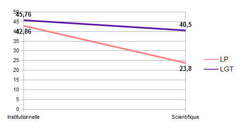 En comparant LGT et LP, si le crédit accordé aux sources institutionnelles est à peu près similaire, une différence importante est à noter en ce qui concernent les sources scientifiques, avec un différentiel de près de 17 points :