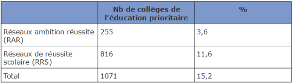 le classement dans le dispositif d'éducation prioritaire (RAR et RRS)