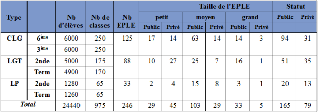Les effectifs par niveau sont ainsi répartis (source : MEN) :