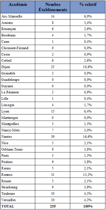Le taux de répartition entre établissements publics et privés est le suivant (INSEE, 2009-2010) :