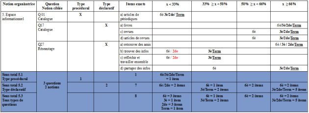 En dehors de la notion « Catalogue » partiellement connue de la majorité des élèves de tous les niveaux, la notion organisatrice « Espace informationnel » est méconnue dans ses autres aspects ciblés par le questionnaire.