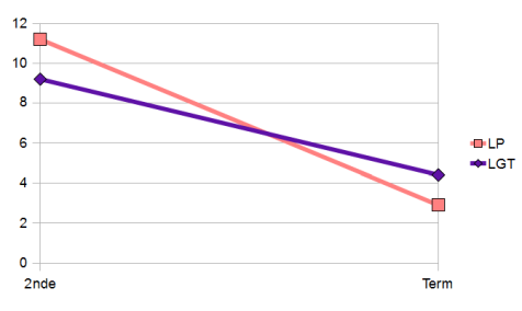 Les deux types de lycéens confondent de moins en moins les concepts de « Source » et de « Cote » au cours de leur cursus. Cependant, si le taux de confusion « Source /Cote » des élèves de LP est plus fort en 2nde (11,2%) il est en revanche plus faible au niveau Terminale (2,9%).
