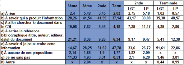 Cette question permet en premier lieu de juger du degré de connaissance qu'ont les élèves du concept de « Source » au travers de deux de ses principaux attributs, la responsabilité et la crédibilité.