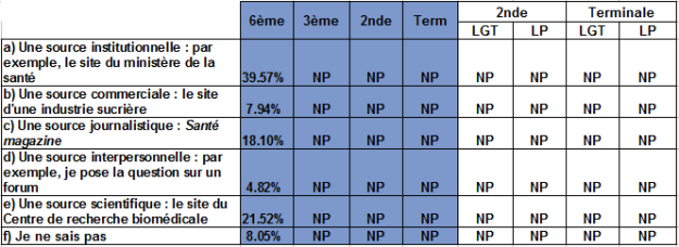 Ainsi, si dans les filières générales et technologiques une sensibilisation à la valeur à accorder aux sources scientifiques commence à se développer, il n'en va pas de même dans les filières professionnelles, où la priorité est peut-être plus accordée aux normes et aux institutions pour un usage plus professionnel que scientifique.