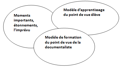 La documentaliste-formatrice s’appuie sur le cadre élaboré en amont en recherche-formation avec le collectif. En analyse de la vidéo, nous avons extrait les savoirs de l’action et cherché à comprendre quels types de savoirs et de compétences sont mis en jeu par les différents acteurs.