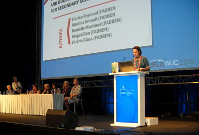 Valérie Glass y a présenté une communication intitulée " Being a school librarian in France : how to take advantage of peers networking to get professional development " (" Être professeur documentaliste en France : comment profiter du réseau des pairs pour développer ses compétences professionnelles ") dans laquelle était développé, entre autres, le rôle des journées professionnelles organisées par la FADBEN dans le développement des compétences professionnelles.