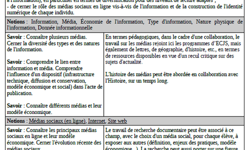 | Savoir : Définir des critères d’évaluation de l’information à partir de connaissances sur l’économie de l’information et le fonctionnement des médias. | Dans le cadre de cet axe, l’évaluation de l’information est envisagée en termes de construction d’une ligne éditoriale ou en termes d’enjeux associés au fonctionnement économique des médias sociaux en ligne et du web. |